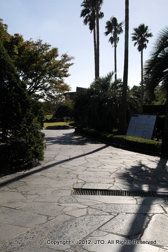The garden is located across from the spacious parking lot.The first impression is of the high stone wall. These stone walls are rather ubiquitous in Jeju, particularly because the significance of the stone is substantial in Jeju.